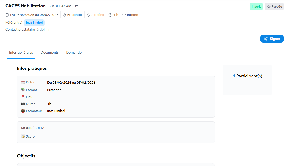 Si vous souhaitez donner la possibilité au formateur de faire émarger les collaborateurs pour la session.