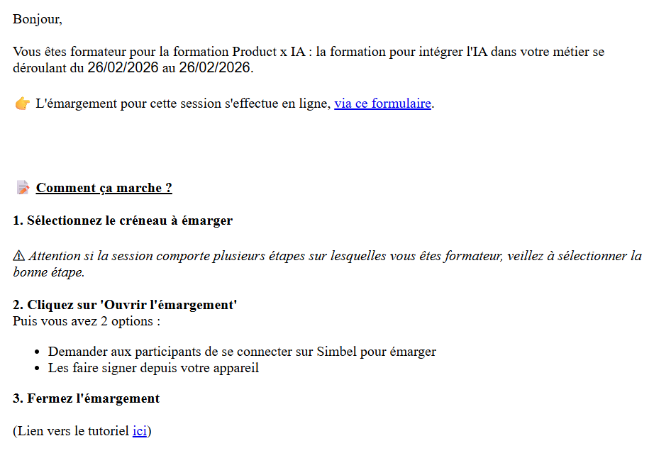 - Option 1 - Signature autonome : Demander aux participants de se connecter sur Simbel pour émarger