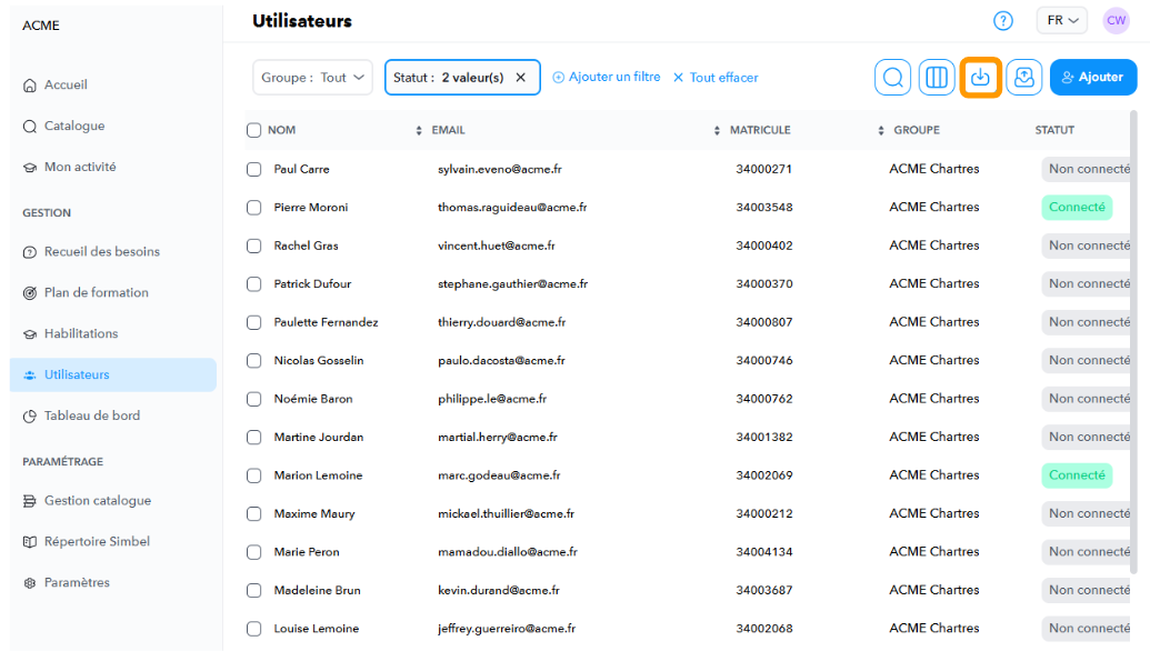 Pour ajouter des utilisateurs désactivés sur Simbel, la plateforme doit d'abord les identifier.