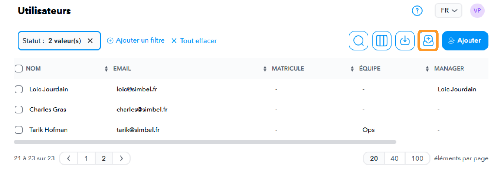 2/ Importez des utilisateurs désactivés sur SIMBEL