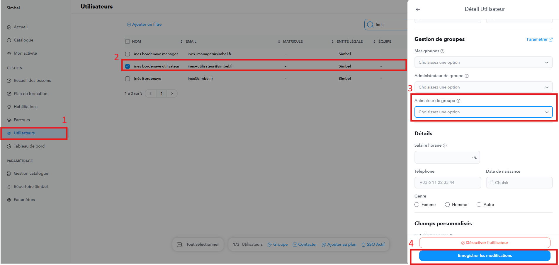 2) En tant qu'administrateur : Comment attribuer le rôle Animateur de groupe à un utilisateur ?