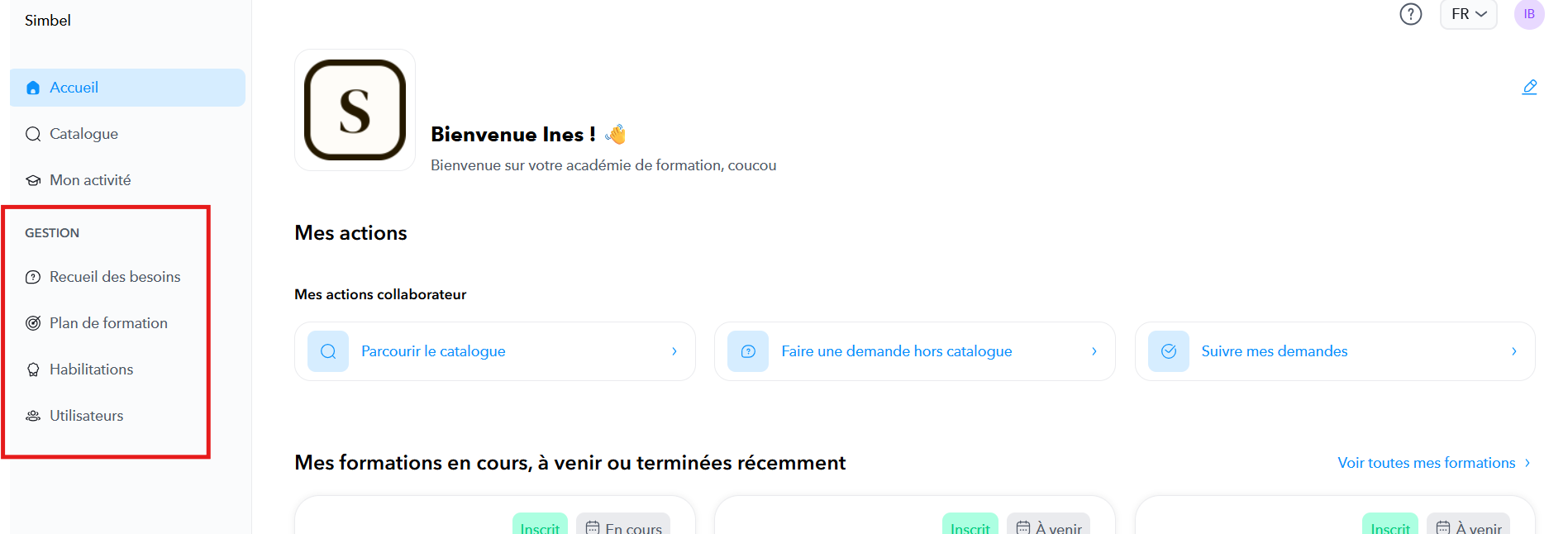 Attention : vous ne pouvez en aucun cas effectuer des modifications sur le plan de formation, répondre à des demandes, proposer des formations,... vous n'avez qu'une vue sur les actions en cours et à venir.