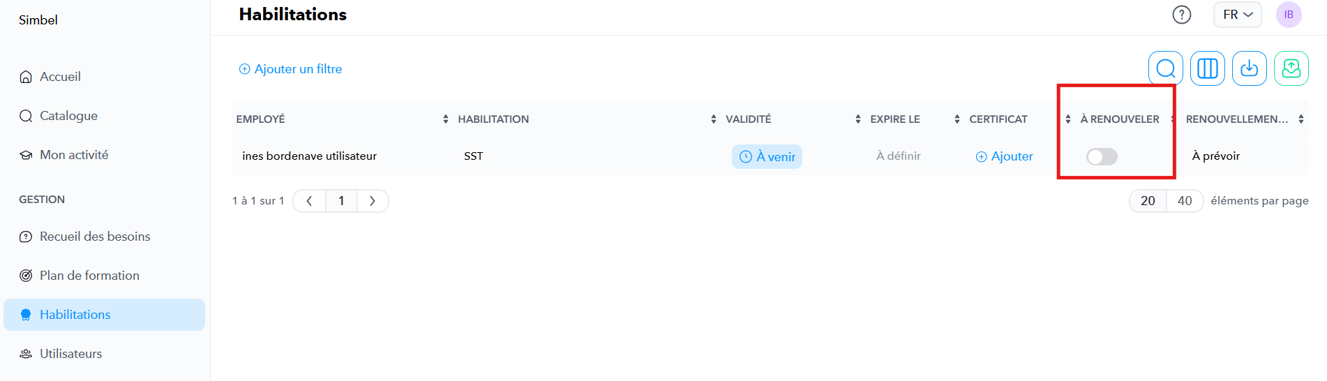 b) Sur les habilitations, vous pouvez indiquer qu'une habilitation n'est pas à renouveler